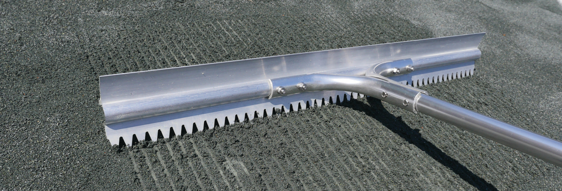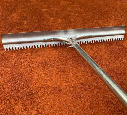 Der Zahnschaber/Glätter ist ein Kombinationsgerät für die Frühjahrsinstandsetzung und Tennisplatzpflege.